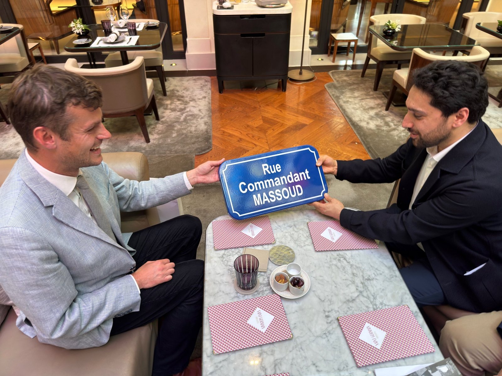 دیمیتری اودین، معاون شهردار ریمز، در دیدار با احمد مسعود، رهبر جبهه مقاومت ملی و فرزند احمد شاه مسعود، نامه رسمی شهرداری و تابلوی خیابان را به او تحویل داده است.