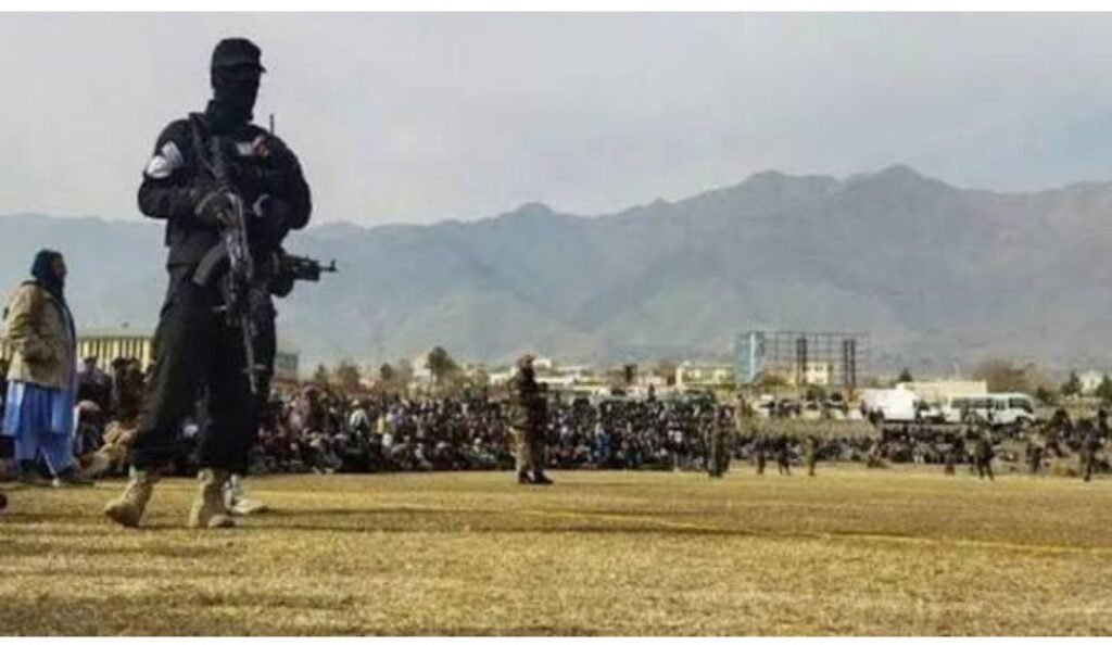 شلاق زدن در محضرعام، اضافه بر مجازاتی است که یک متهم در رژیم طالبان مستوجب آن شناخته میشود.