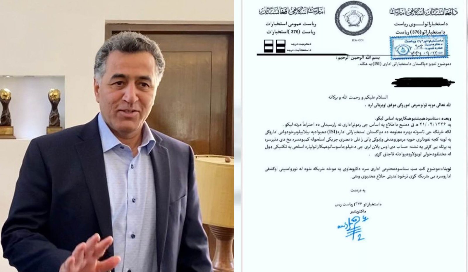 این سند نامهای است که در آن به بخشهای استخباراتی دستور داده شده تا مراقب اوضاع بوده و از نفوذ استخبارات پاکستان در ساختارهای دولتی جلوگیری به عمل آورد.