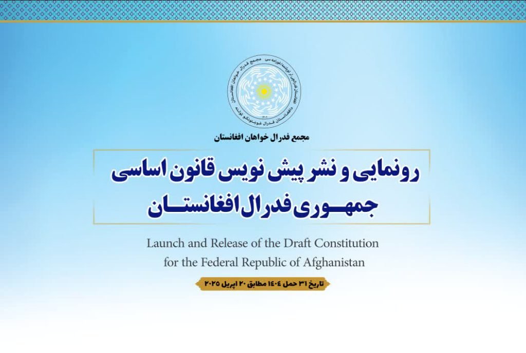 مجمع فدرالخواهان افغانستان، با نشر اعلامیهای، از انتشار و رونمایی پیشنویس«قانون اساسی جمهوری فدرال افغانستان» خبر داد و آن را یک «سند راهگشاه برای بیرون رفت از بحران مزمن تمرکز قدرت» خواند.