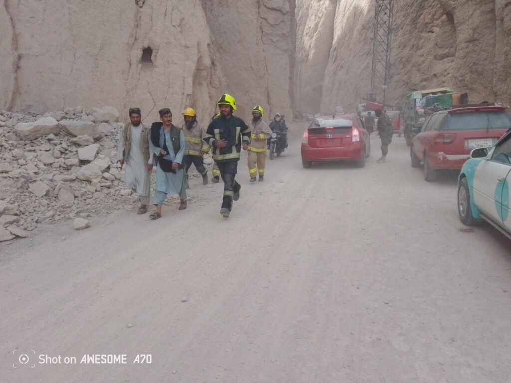 شاهراه کابل ـ بلخ در ساحه تنگی تاشقرغان به اثر ریزش سنگ مسدود و شماری از دوکانها در این منطقه از بین رفته است.