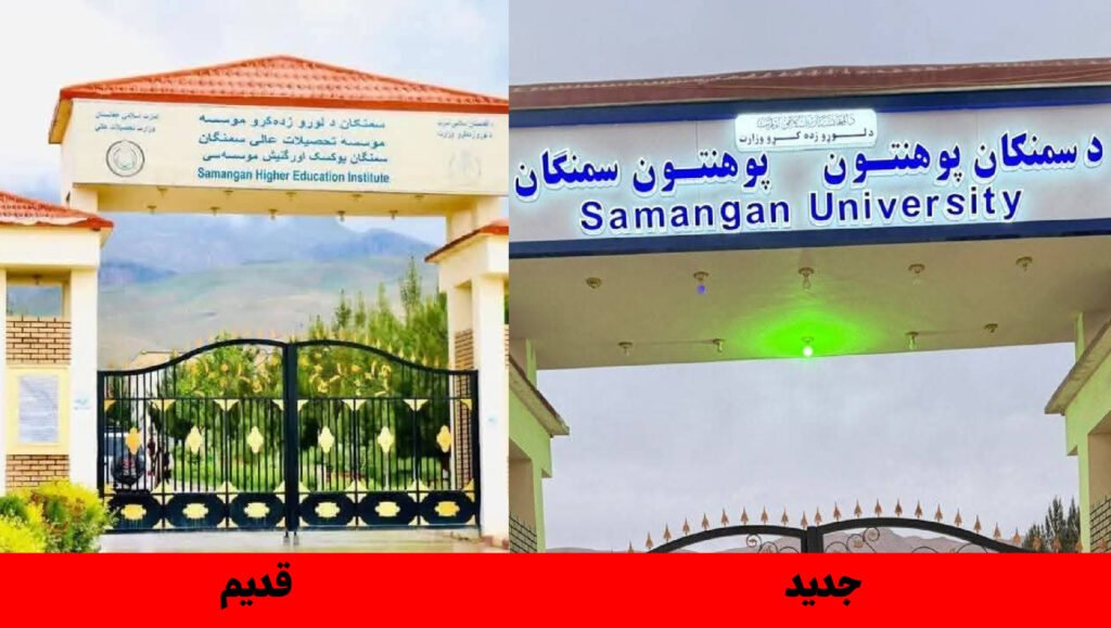 طالبان لوحه سابقه درب ورودی دانشگاه سمنگان را برداشته و لوحه جدید در آن نصب کردهاندکه زبانهای فارسی و ازبیکی از آن حذف شده است.